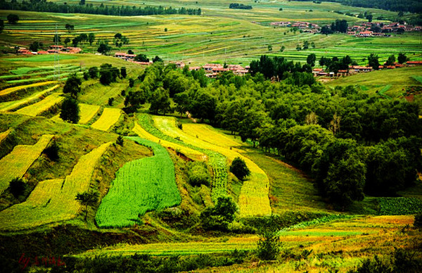 梯田是北方不多見的風光之一,如果不是草原天路,不知道還要跑多遠才能看到這樣的美景。夏天的顏色還只有翠綠色的單一,但依然能看得見分明的層次。